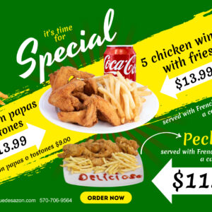 Alitas con papas o tostones | chicken wings with fries or Tostones