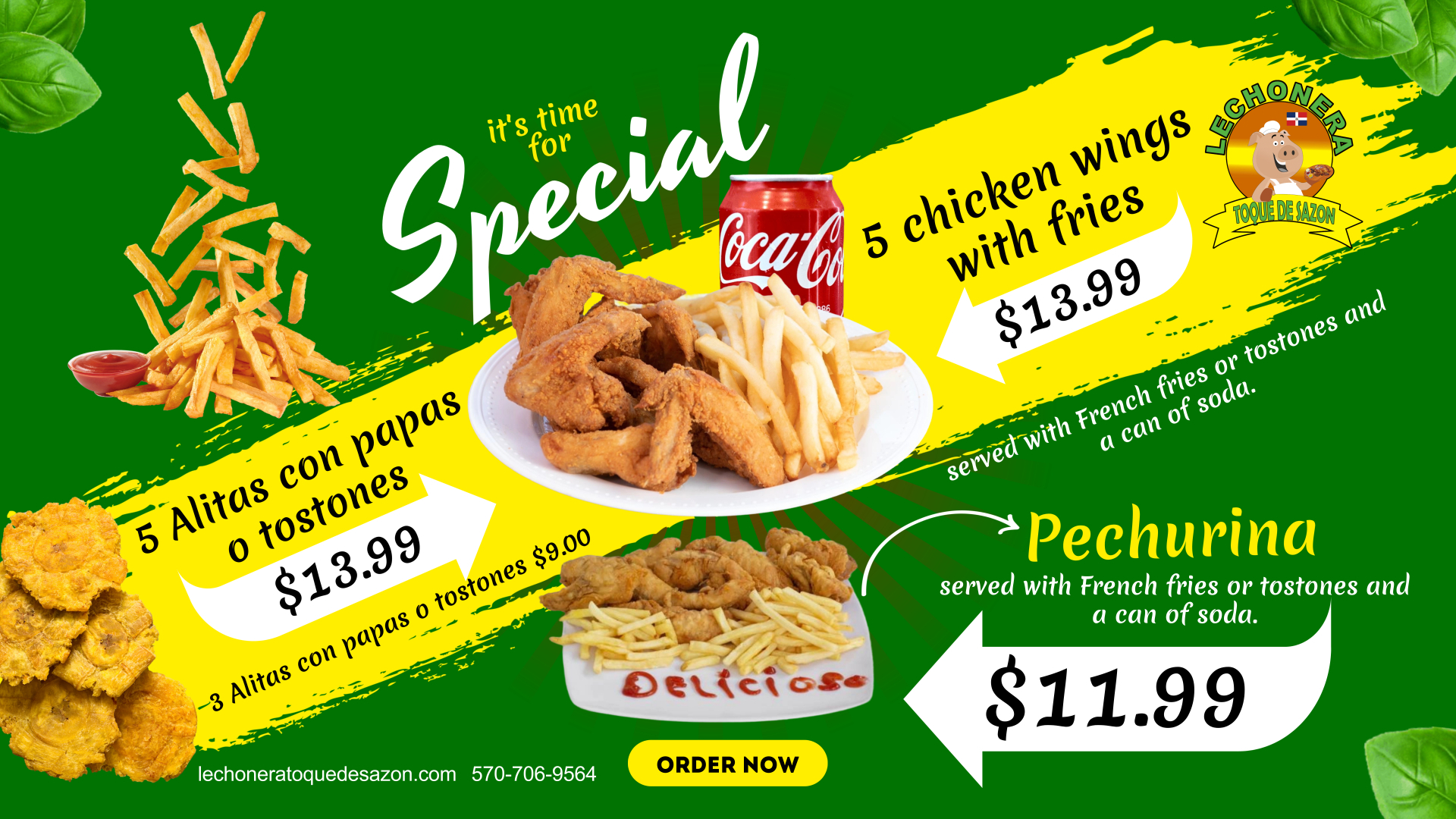 Alitas con papas o tostones | chicken wings with fries or Tostones